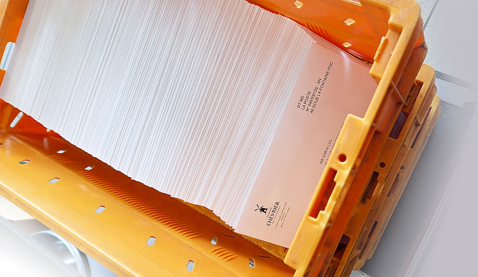Nous effectuons la mise sous enveloppe dans notre atelier et déposons les enveloppes à La Poste pour la distribution.